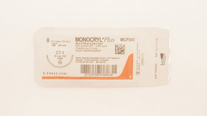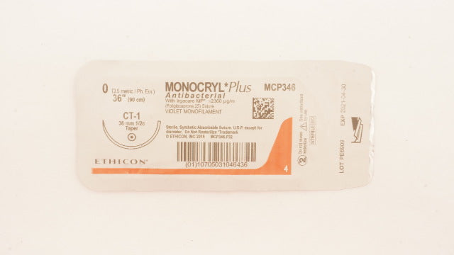- Ethicon MCP346 0 MONOCRYL Plus Stre CT-1 36mm 1/2c Taper, 36inch (x)