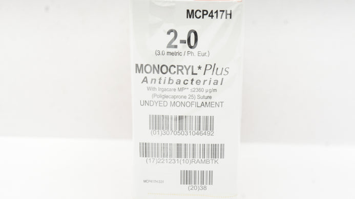- Ethicon MCP417H 2-0 Monocryl Plus Stre SH 26mm 1/2c Taper 27inch (x) - Box of 36