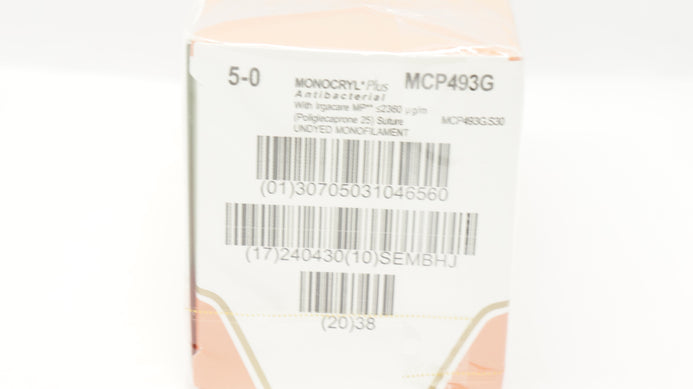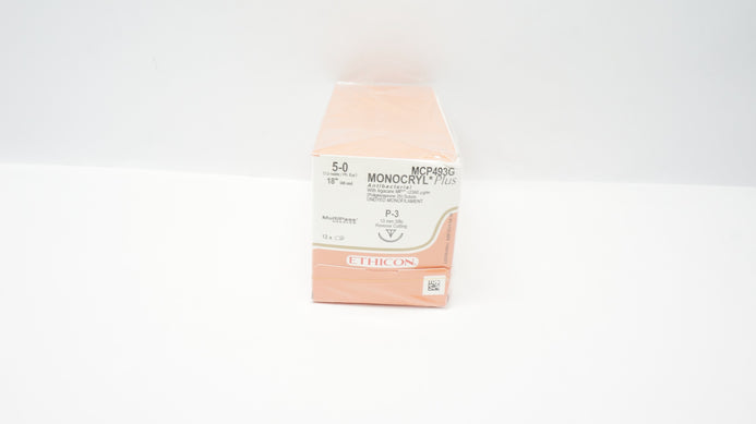 - Ethicon MCP493G 5-0 MONOCRYL P-3 13mm 3/8c Reverse Cutting 18inch(x) - Box of 12