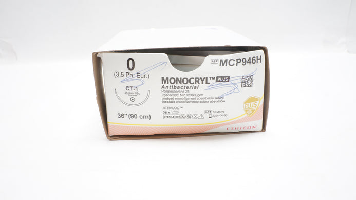 - Ethicon MCP946H 0 MONOCRYL Plus, CT-1, 36mm 1/2c Taper, 36inch (x) - Box of 30