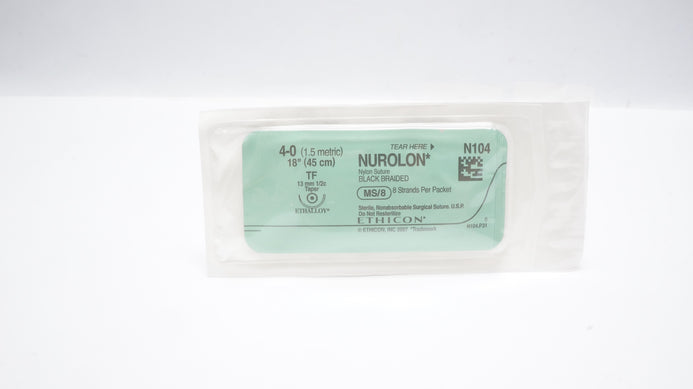 - Ethicon N104 4-0 NUROLON Nylon, TF, 13mm 1/2c Taper, 18inch
