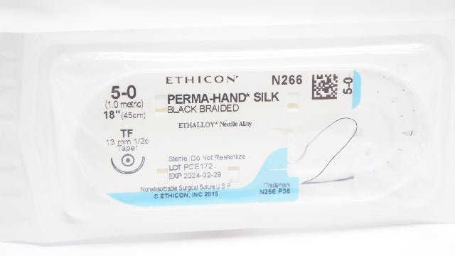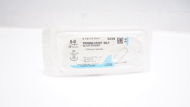 - Ethicon N266 5-0 PERMA-HAND SILK Black Braided Stre TF 13mm 1/2c Taper 18inch(x)