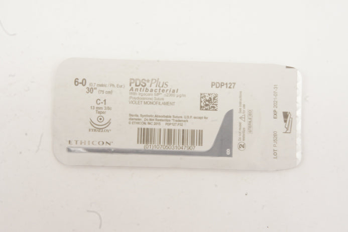 - Ethicon PDP127 6-0 PDS Plus Antibacterial, C-1, Taper 13mm 3/8c, 30inch