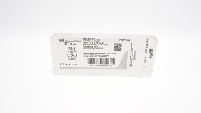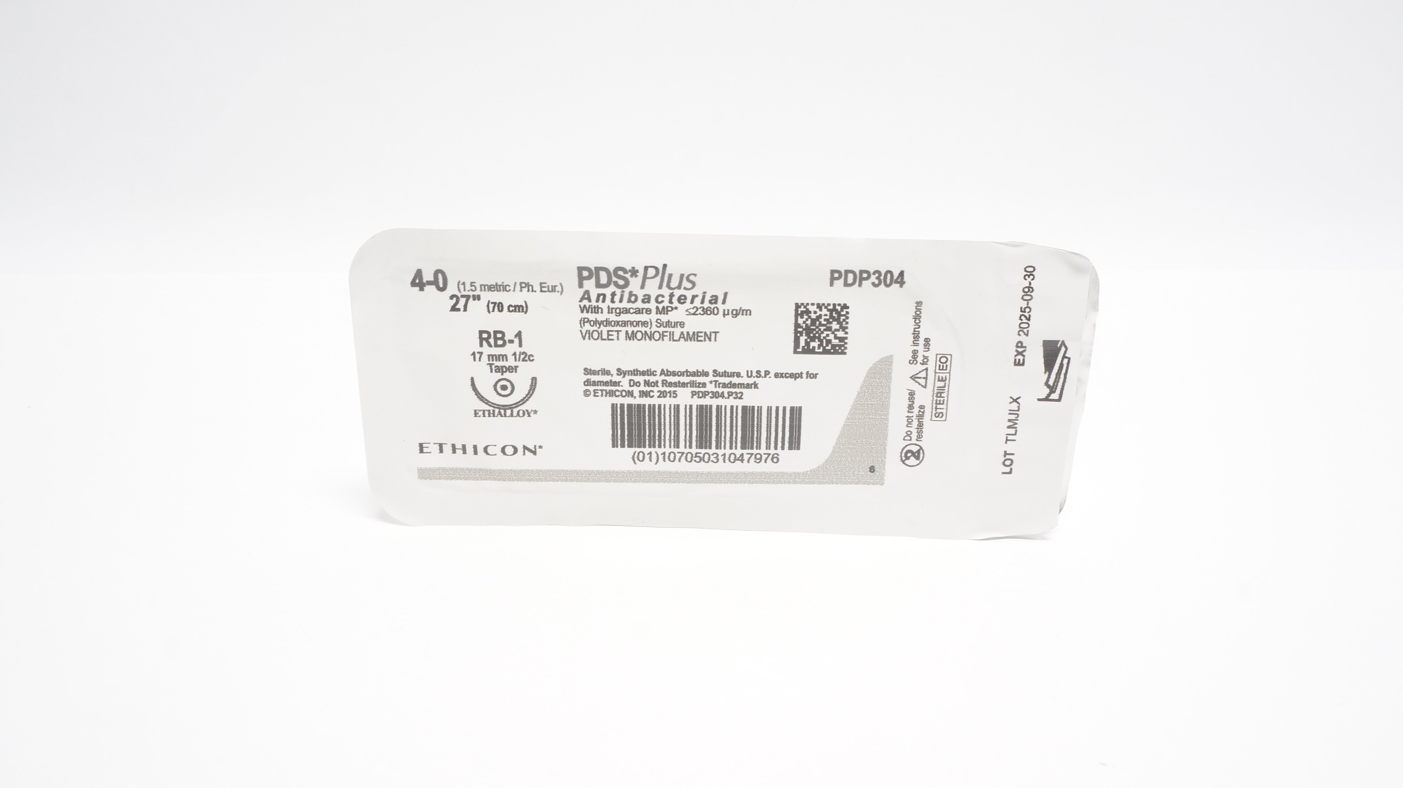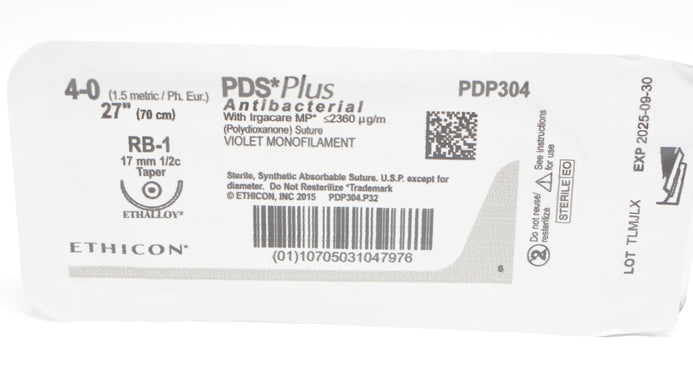 - Ethicon PDP304 4-0 PDS Plus Antibacterial Stre RB-1 17mm 1/2c Taper, 27inch (x)