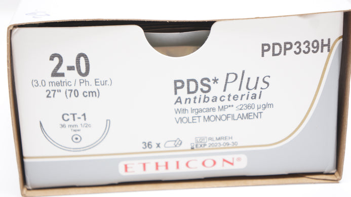 - Ethicon PDP339H 2-0 PDS Plus Stre CT-1 36mm 1/2c Taper, 27inch (x) - Box of 29