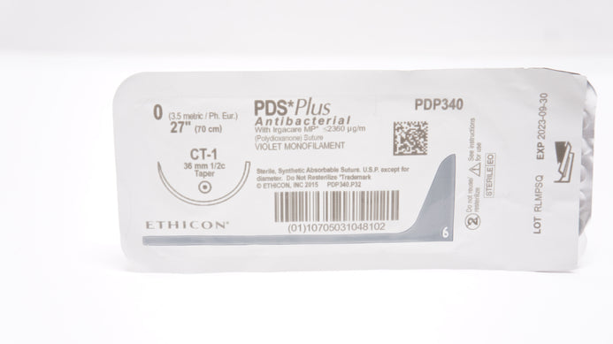 - Ethicon PDP340 0 PDS Plus Antibacterial Stre CT-1, 36mm 1/2c Taper, 27inch (x)