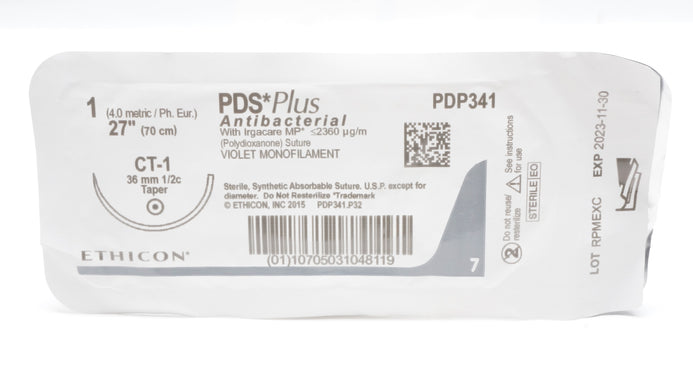 - Ethicon PDP341 1 PDS Plus Polydioxanone Stre CT-1 36mm 1/2c Taper, 27inch(x)