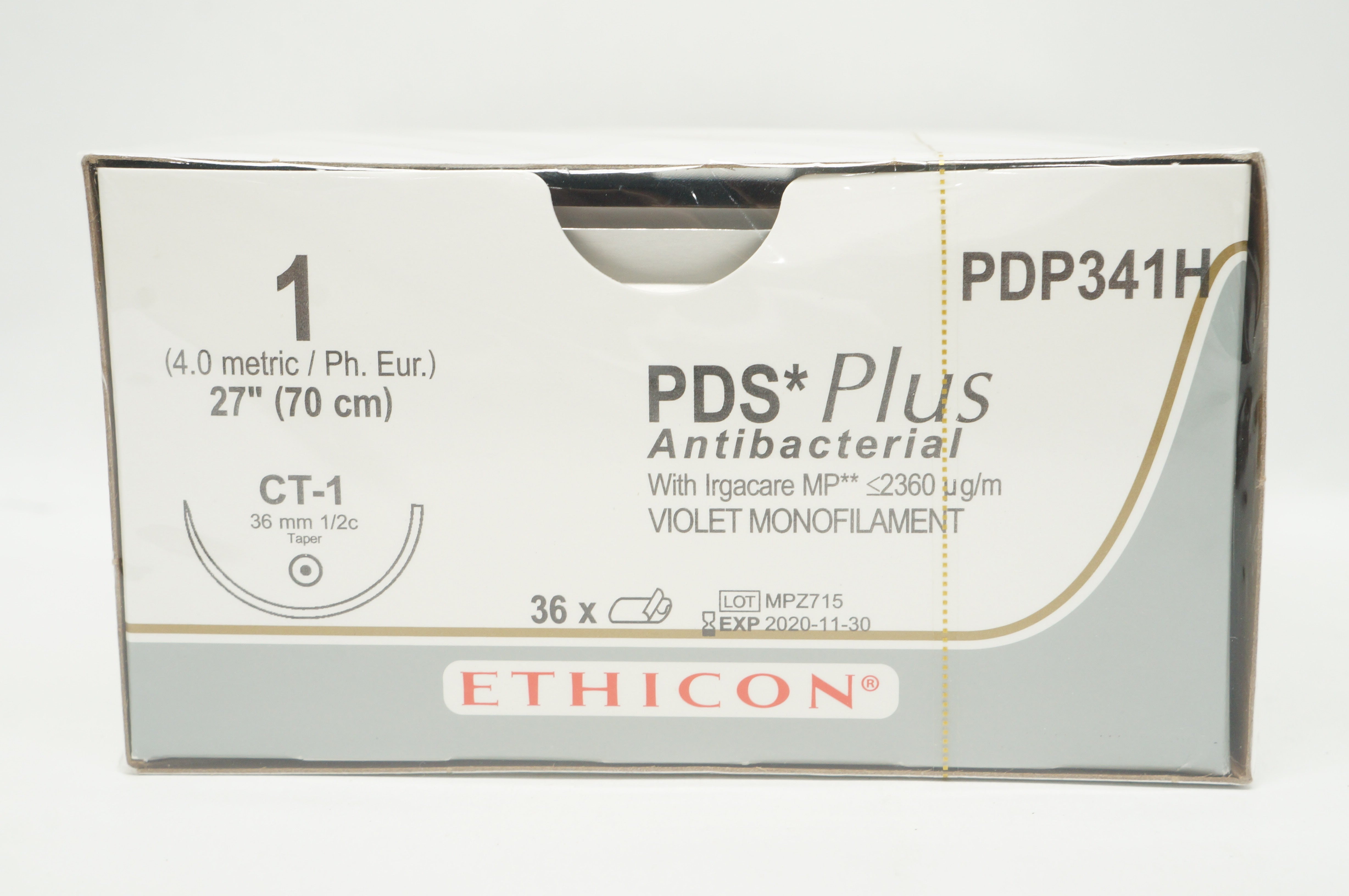- Ethicon PDP341H 1 PDS Plus Stre CT-1 36mm 1/2c Taper, 27inch (x) - Box of 36