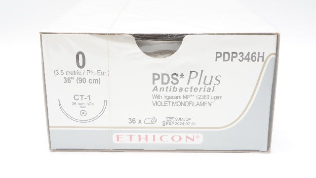 - Ethicon PDP346H 0 PDS Plus Stre CT-1 36mm 1/2c Taper, 36inch (x) - Box of 36
