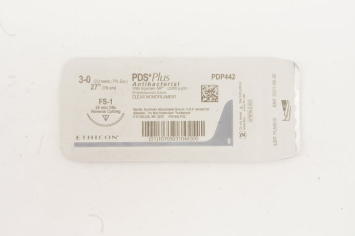 - Ethicon PDP442 3-0 PDS Plus, FS-1 24mm 3/8c Reverse Cutting, 27inch