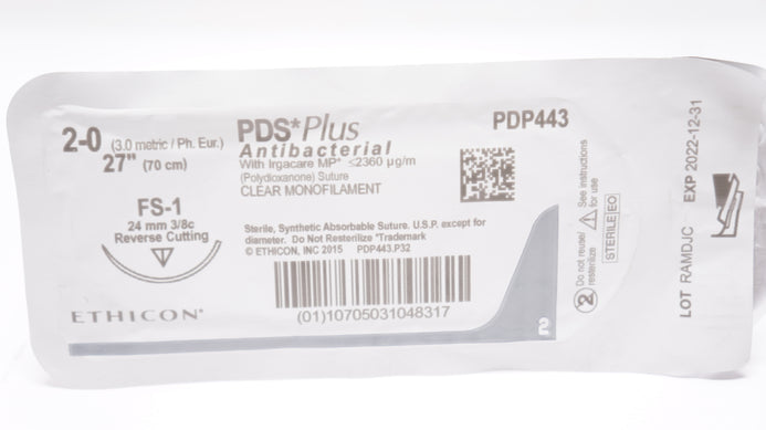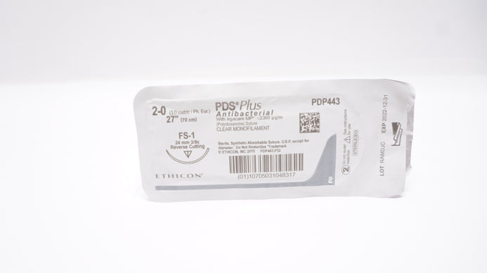 - Ethicon PDP443 2-0 PDS Plus, FS-1, 24mm 3/8c Reverse Cutting, 27inch (x)