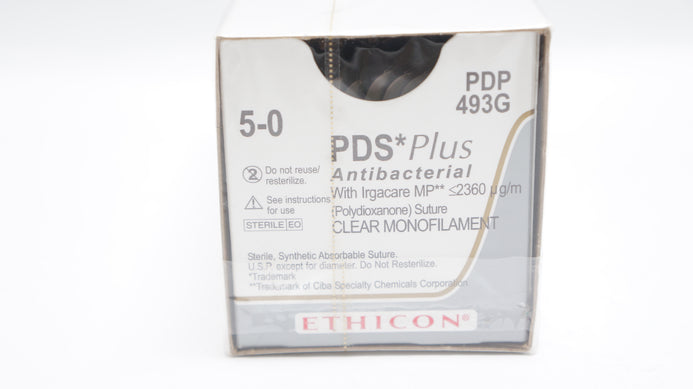 - Ethicon PDP493G 5-0 PDS Antibacterial Stre P-3 13mm 3/8c 18inch (x) - Box of 12
