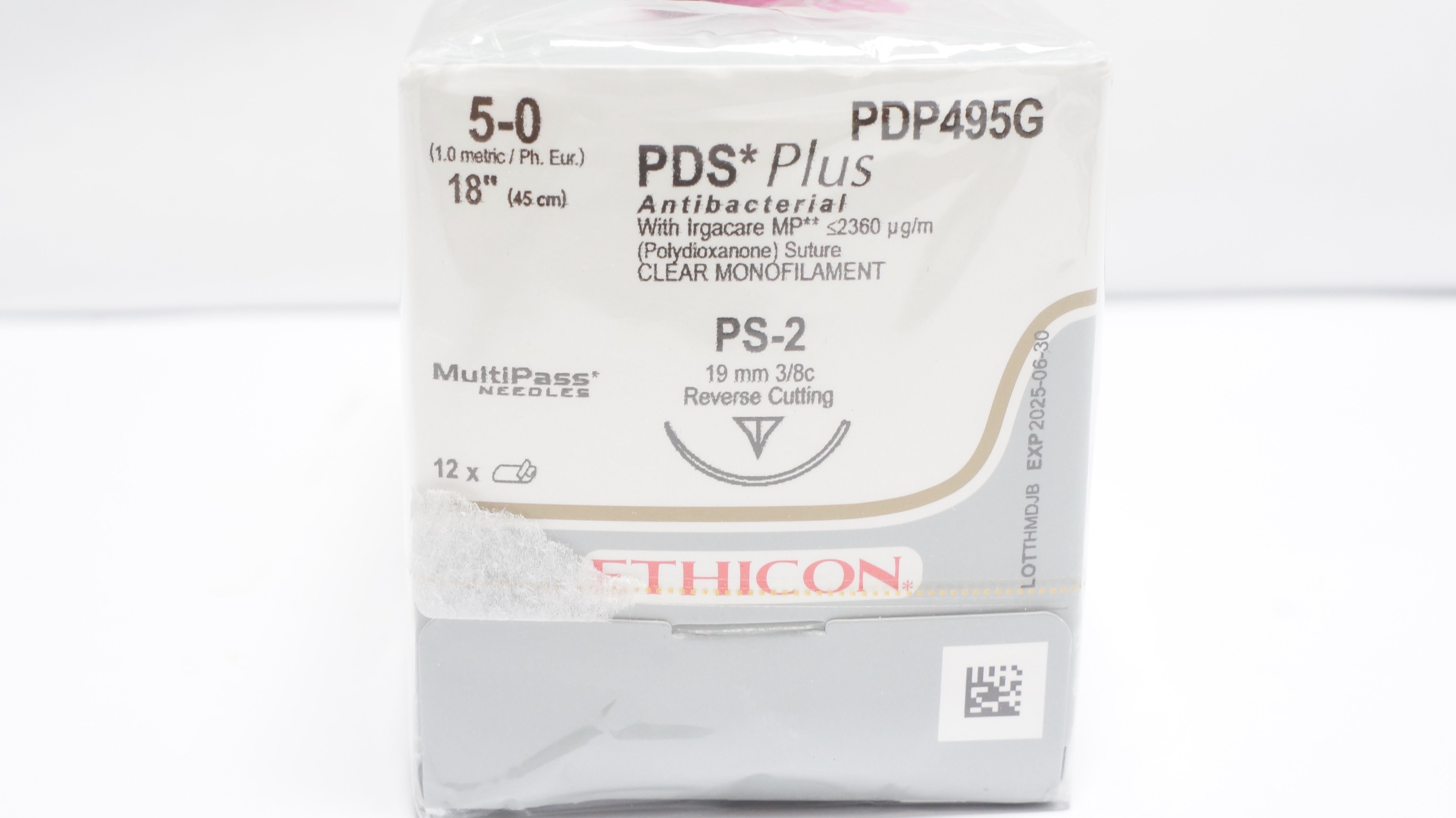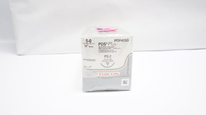 - Ethicon PDP495G 5-0 PDS+ Antibacterial PS-2 19mm 3/8c Reverse Cutt.-Box of 12(x)