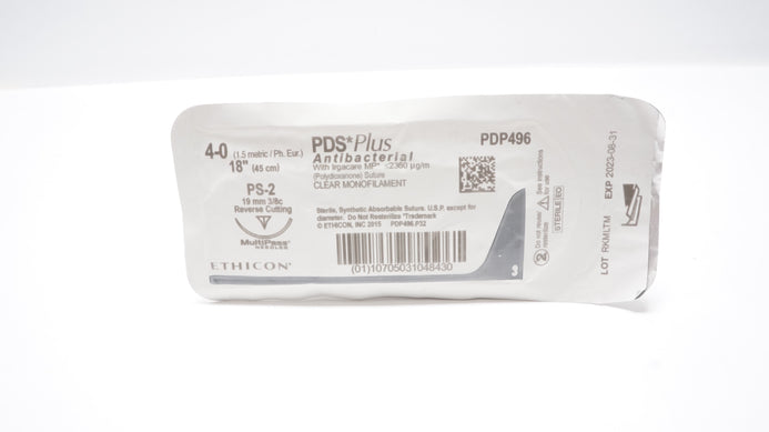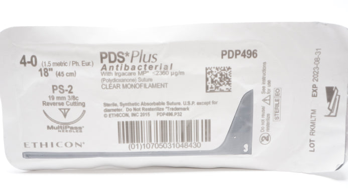 - Ethicon PDP496 4-0 PDS Plus Stre PS-2 19mm 3/8c Reverse Cutting 18in (x)