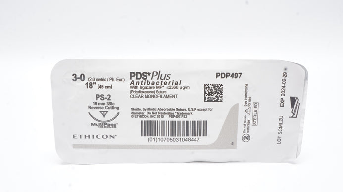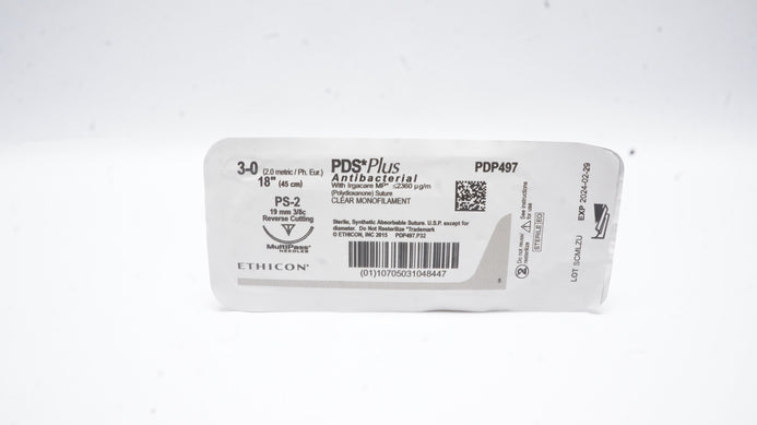 - Ethicon PDP497 3-0 PDS Plus Stre PS-2, 19mm 3/8c Reverse Cutting 18inch (x)