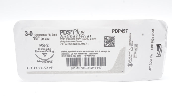 - Ethicon PDP497 3-0 PDS Plus, PS-2, 19mm 3/8c, 18inch (x)