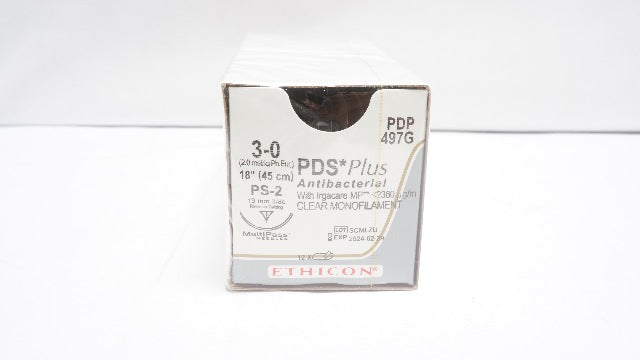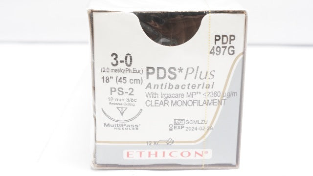 - Ethicon PDP497G 3-0 PDS Plus PS-2 19mm 3/8c Reverse Cutting, 18in (x) -Box of 12