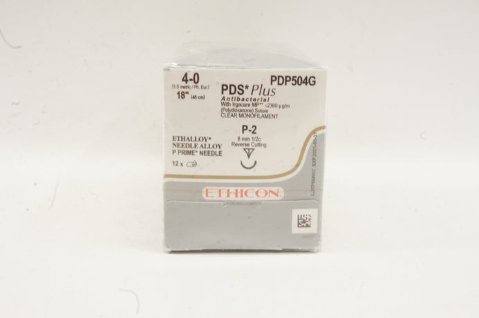 - Ethicon PDP504G 4-0 PDS Plus P-2 8mm 1/2c Reverse Cutting 18 inch (x) - Box of 12