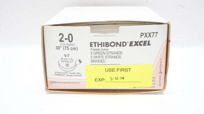 - Ethicon PXX77 2-0 Ethibond Stre V-7 26mm 1/2c Tapercut 30inch (x) - Box of 12