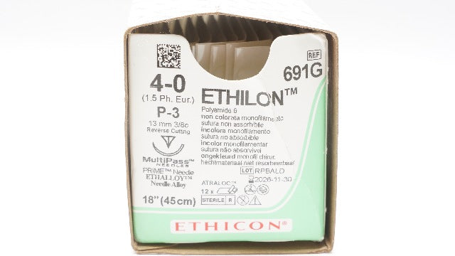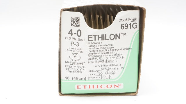 - Ethicon R691G 4-0 MERSILENE, P-3, 13mm 3/8c, 18inch - Box of 12