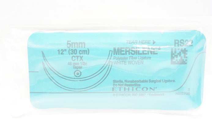 - Ethicon RS22 5mm MERSILENE, CTX, 48mm 1/2c Taper, 12inch (x)