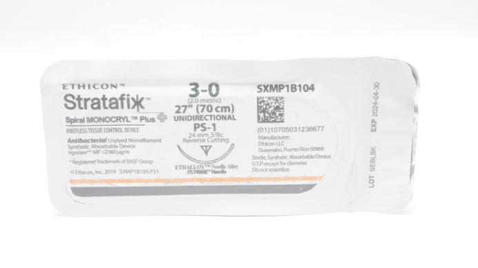- Ethicon SXMP1B104 3-0 Stratafix Stre PS-1 24mm 3/8c Reverse Cutting 27inch (x)