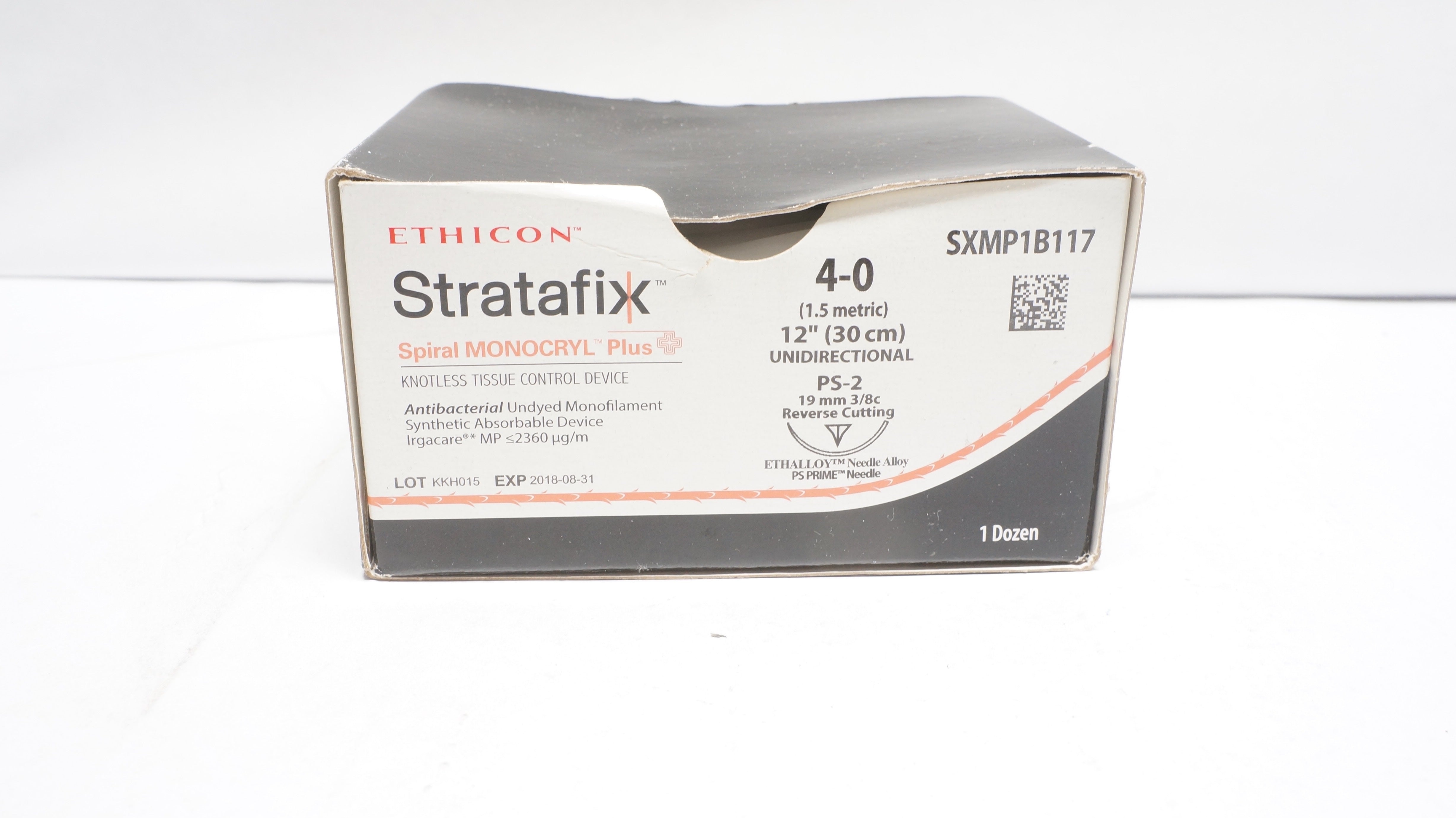 - Ethicon SXMP1B117 4-0 Stratafix PS-2 19mm 3/8c Reverse Cutting 12in(x)-Box of 12
