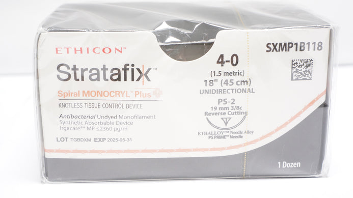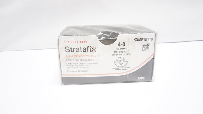 - Ethicon SXMP1B118 4-0 Stratafix Device PS-2 19mm 3/8c Reverse Cutt.18in-Box of10