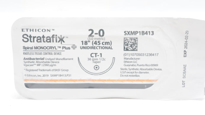 - Ethicon SXMP1B413 2-0 Stratafix Monofilament CT-1 36mm 1/2c Taper 18inch (x)