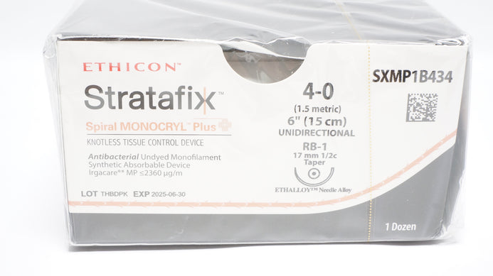 - Ethicon SXMP1B434 4-0 STRATAFIX Spiral MONOCRYL Plus RB-1 17mm, 6in(x)-Box of 12