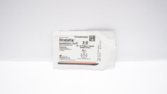 - Ethicon SXMP2B402 3-0 Stratafix Spiral Monocryl + 6In + 6In RB-1 17mm 1/2c Taper