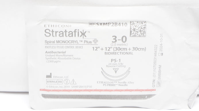 - Ethicon SXMP2B410 3-0 Stratafix Spiral Monocryl Plus 12+12in. PS-1 24mm 3/8c (x)