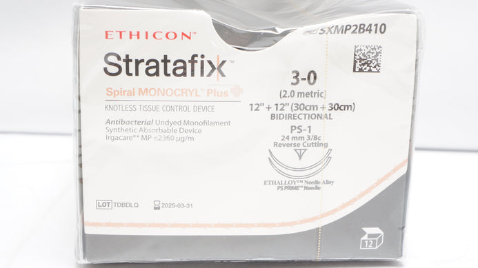 - Ethicon SXMP2B410 3-0 Stratafix Spiral Monocryl Plus 12+12in. PS-1 (x)-Box of 12