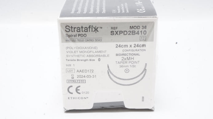 - Ethicon SXPD2B410 0 Stratafix Spiral PDO 2xMH 36mm 1/2c, 24x 24cm(x) - Box of 12