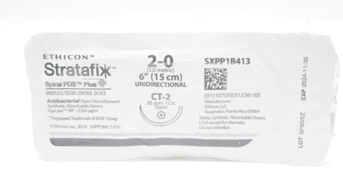 - Ethicon SXPP1B413 2-0 Stratafix Spiral PDS Stre CT-2 26mm 1/2c Taper, 6inch (x)