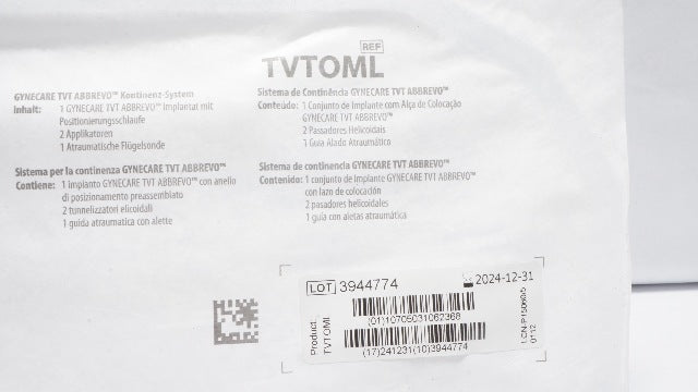 - Ethicon TVTOML Gynecare TVT ABBREVO Continence System (x)