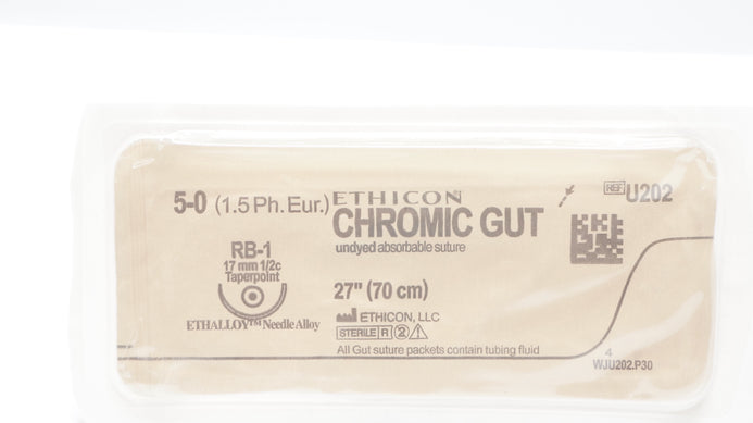 - Ethicon U202 5-0 CHROMIC GUT Surgical Stre RB-1 17mm 1/2c Taperpoint 27inch (x)