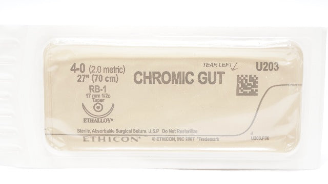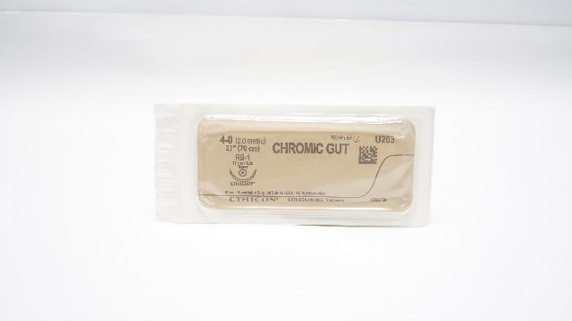 - Ethicon U203 4-0 CHROMIC GUT Surgical Stre RB-1 17mm 1/2c Taper, 27inch
