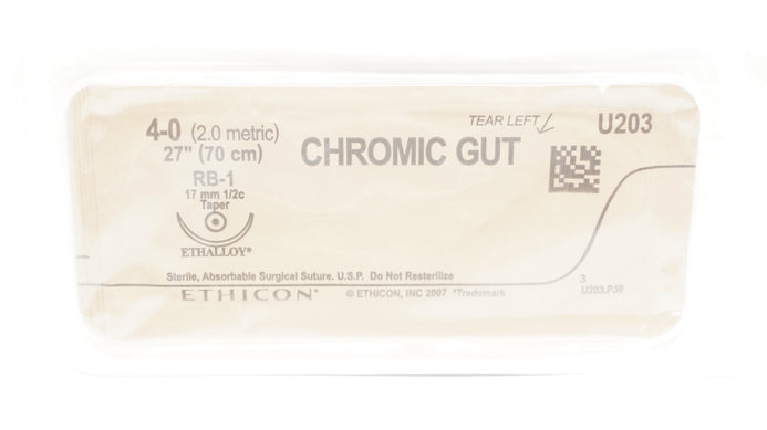 - Ethicon U203 4-0 CHROMIC GUT Surgical Stre RB-1 17mm 1/2c Taper, 27inch (x)