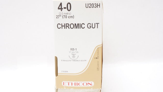 - Ethicon U203H 4-0 Chromic Gut, RB-1, 17mm 1/2c Taper, 27inch - Box of 31