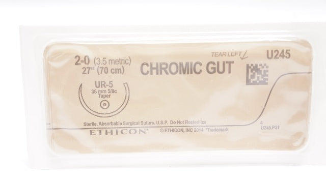 - Ethicon U245 2-0 CHROMIC GUT, UR-5, 36mm 5/8c Taper, 27inch (x)
