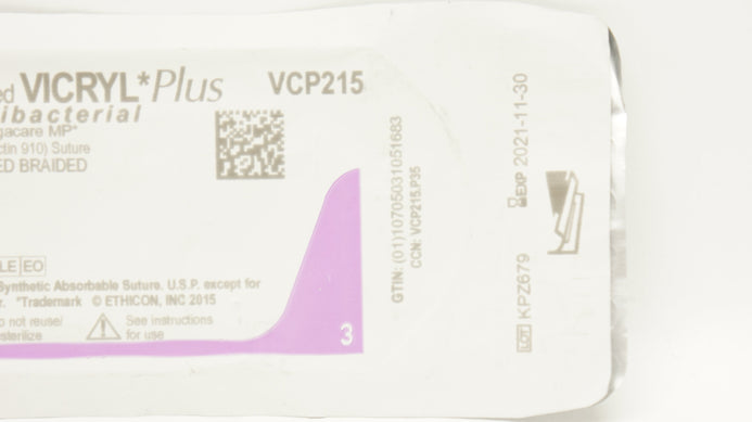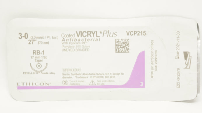- Ethicon VCP215 3-0 Coated VICRYL Plus Stre RB-1 17mm 1/2c Taper, 27inch