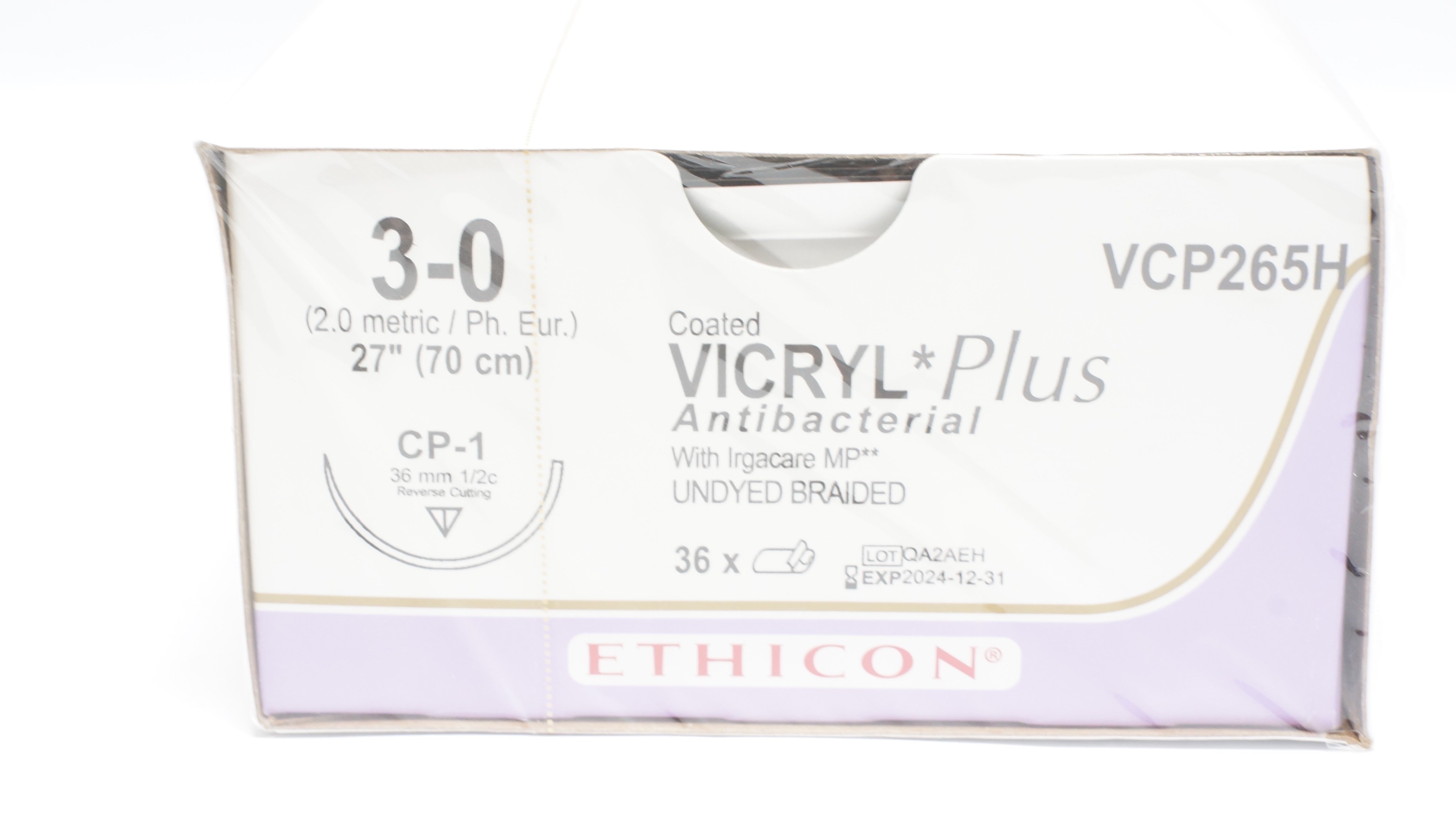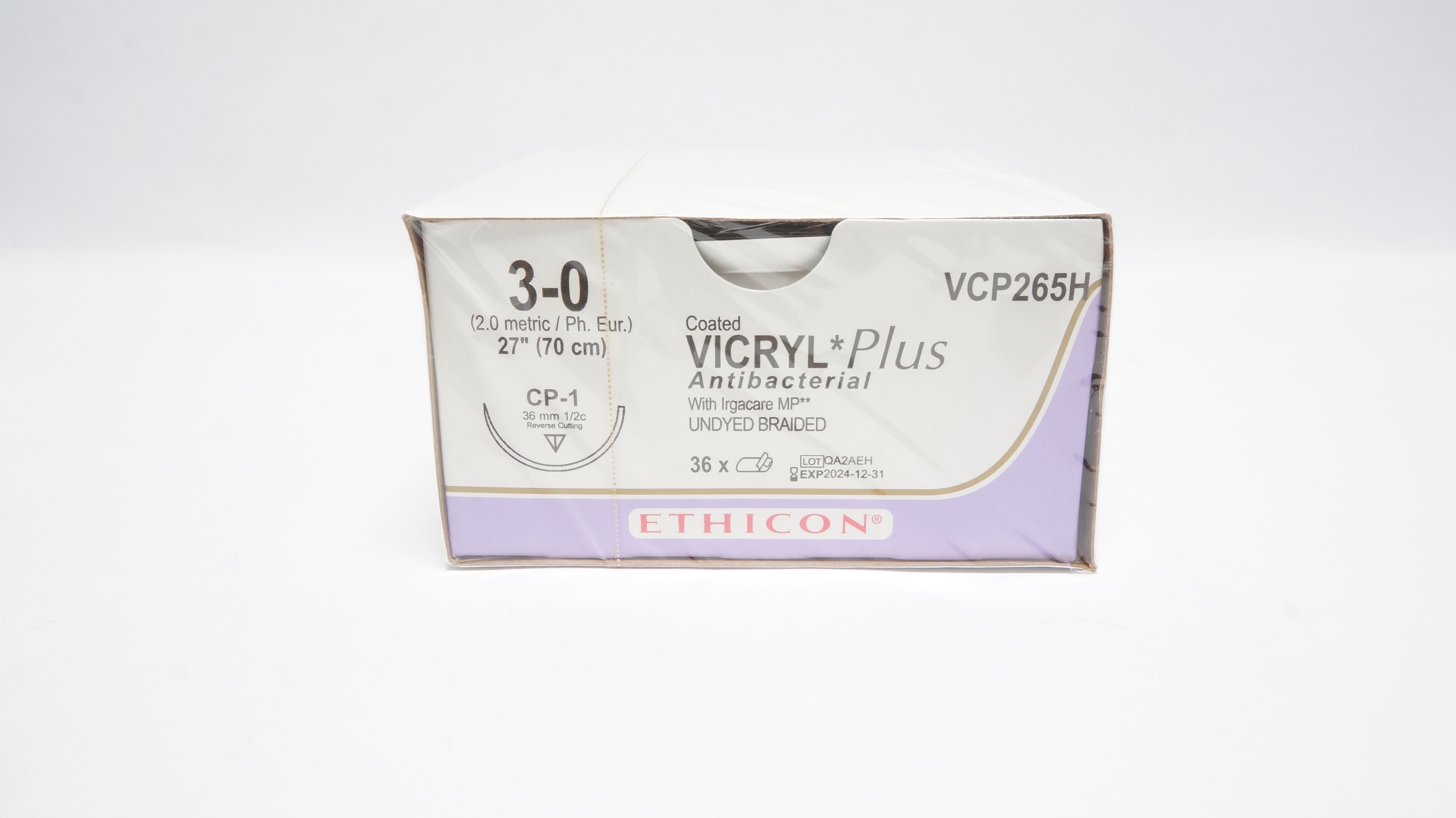 - Ethicon VCP265H 3-0 Coated VICRYL CP-1 36mm,Reverse Cutting 27inch (x)-Box of 36