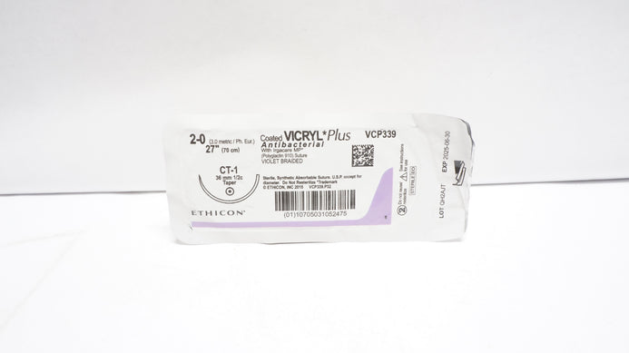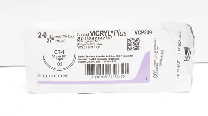 - Ethicon VCP339 2-0 Coated VICRYL Plus, CT-1, Taper 36mm 1/2c, 27inch (x)