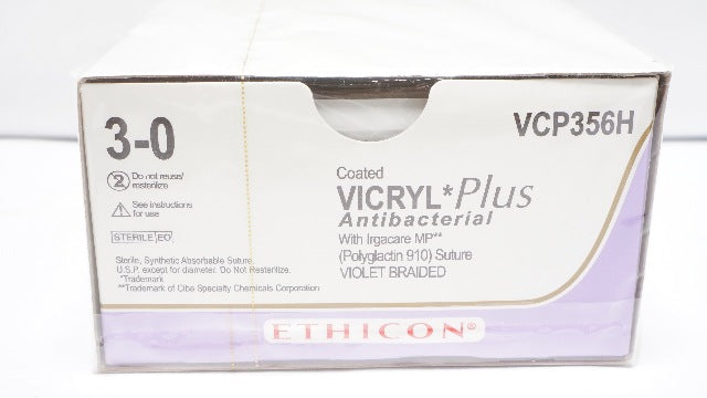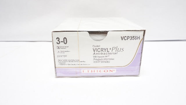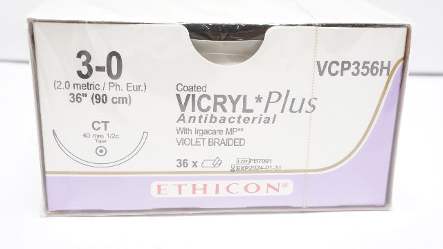 - Ethicon VCP356H 3-0 Coated Vicryl+ Stre CT 40mm 1/2c Taper 36In - Box of 36 (x)