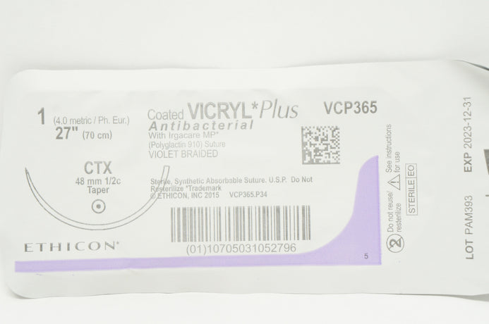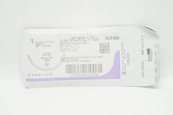 - Ethicon VCP365 1 Coated VICRYL Plus Stre CTX 48mm 1/2c Taper, 27inch