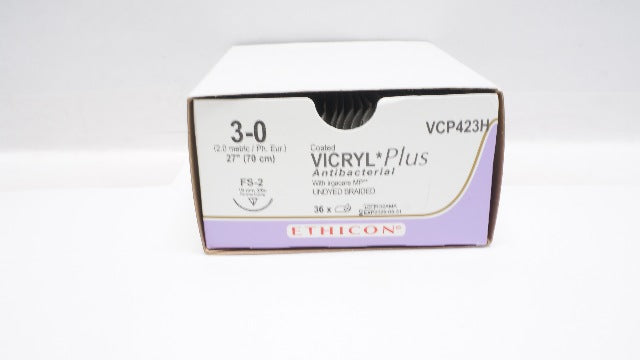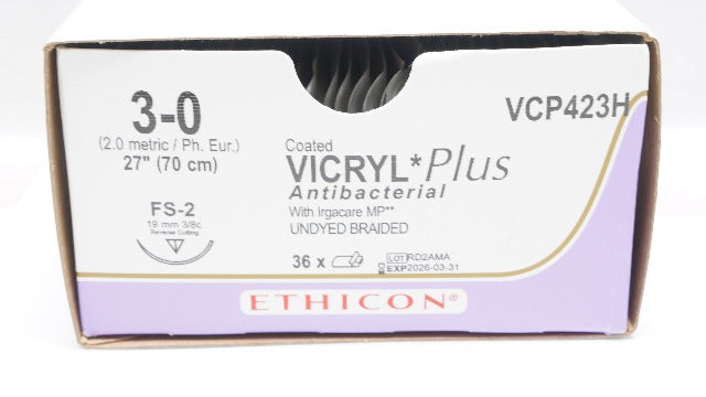 - Ethicon VCP423H 3-0 VICRYL Stre FS-2 19mm 3/8c Reverse Cutting 27inch -Box of 33