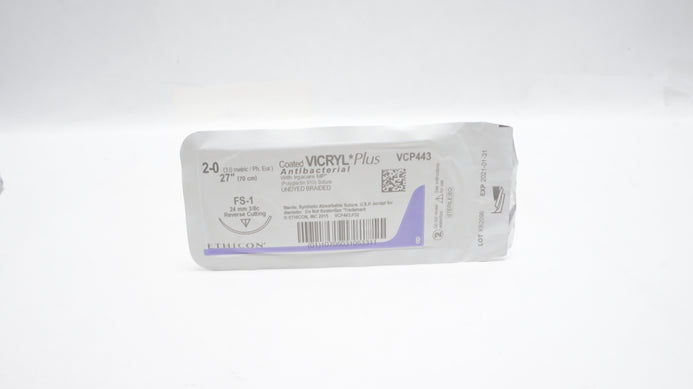 - Ethicon VCP443 2-0 VICRYL Plus Stre, FS-1 24mm 3/8c Reverse Cutting 27inch (x)