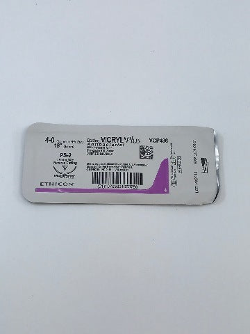 - Ethicon VCP496H 4-0 VICRYL Plus, PS-2 19mm 3/8c Reverse Cutting, 18in ~ Lot of 22