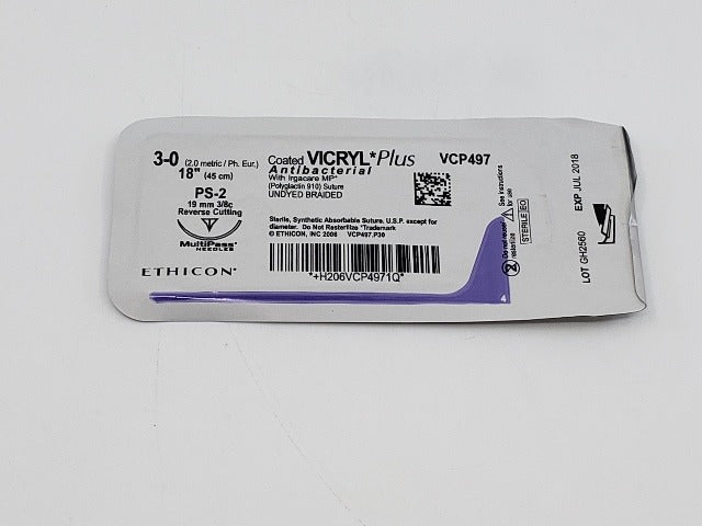 - Ethicon VCP497 3-0 VICRYL, PS-2, 19mm 3/8c, 18in. (x)
